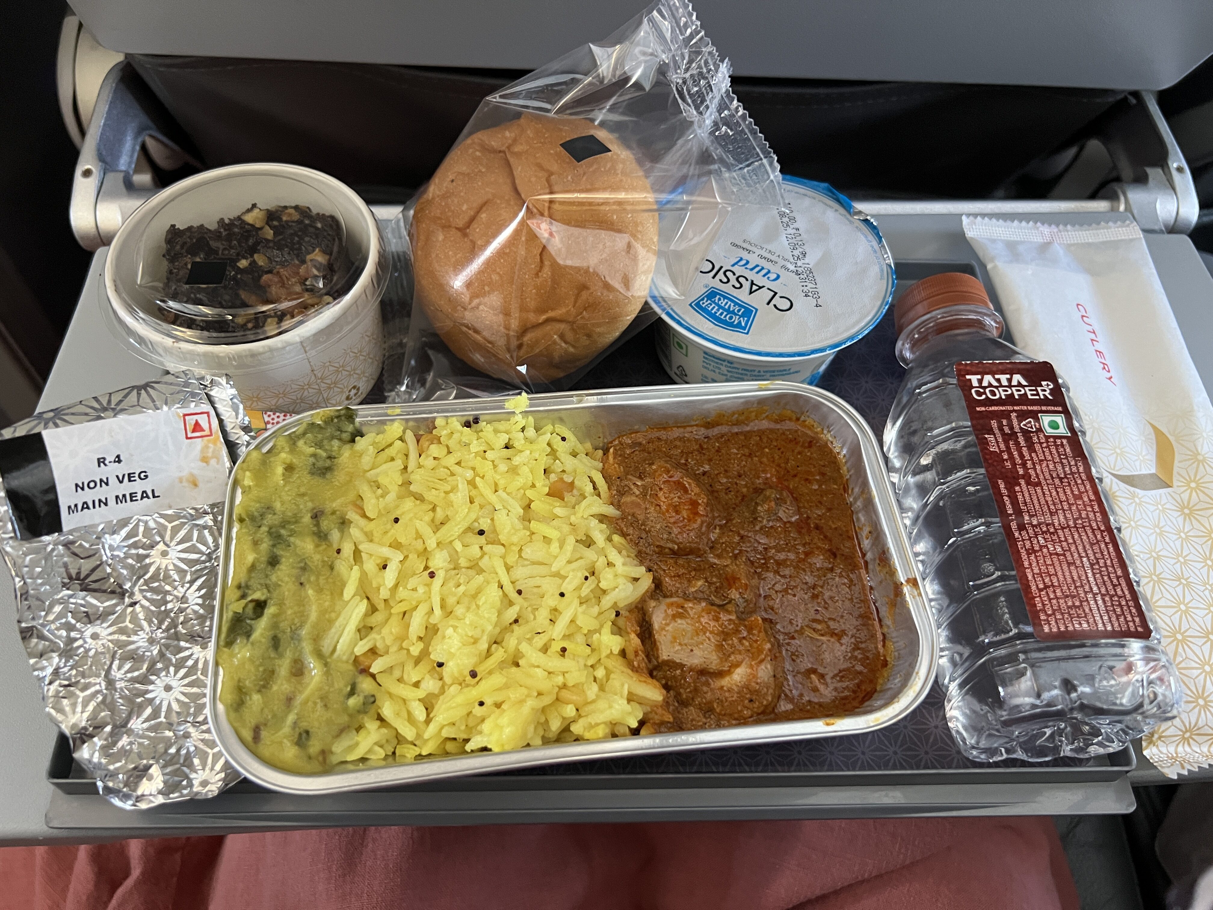 機内で出されたのは「最後のノンベジご飯(チキン)」🍗というのも、リシケシュは 完全ベジタリアン・エリア
