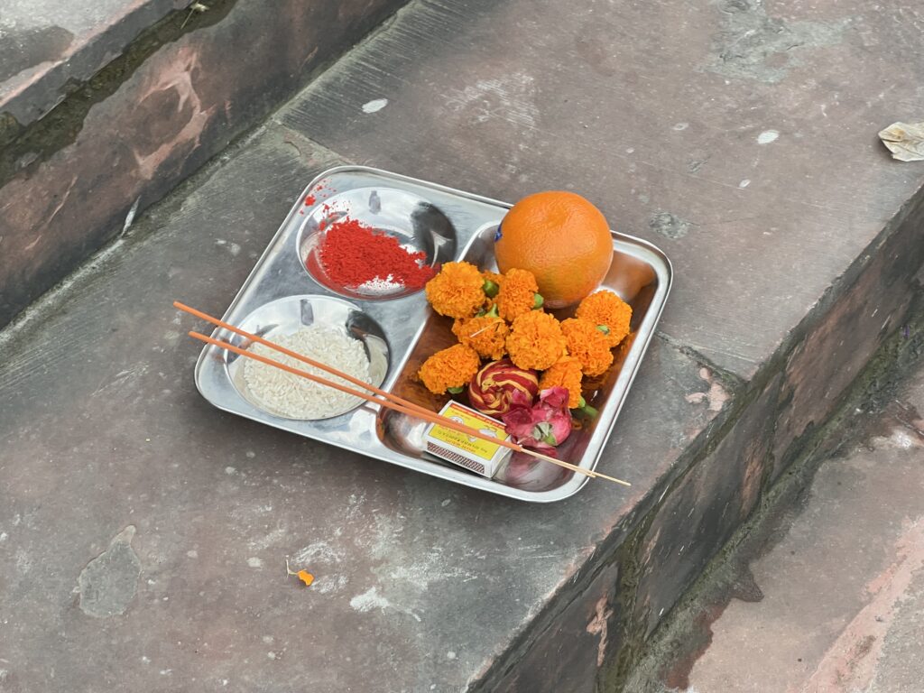 まずはガンジス川のほとりでの プージャ(お祈りの儀式)